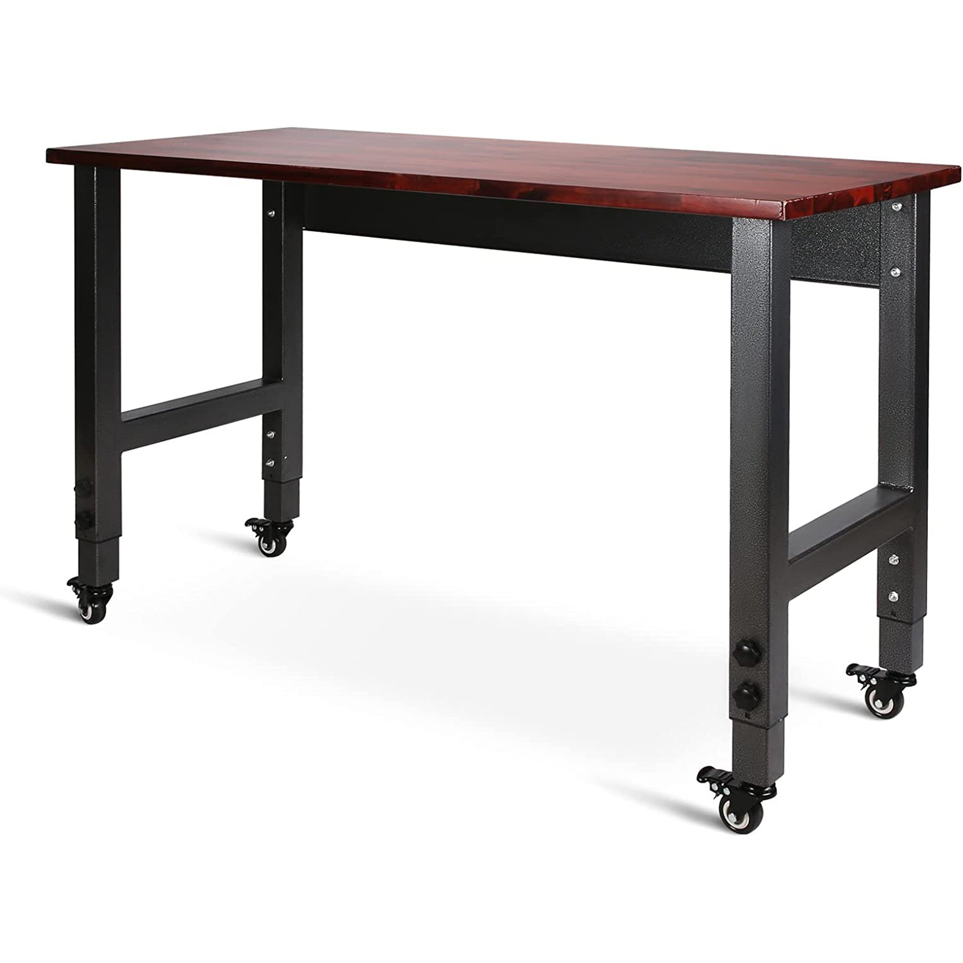 The height of the workbench can be adjusted from 28.3 inches to 42.5 inches, it has 14-level adjustable heights to choose, no tools needed, you only need rotate the knob until you find the most comfortable height.