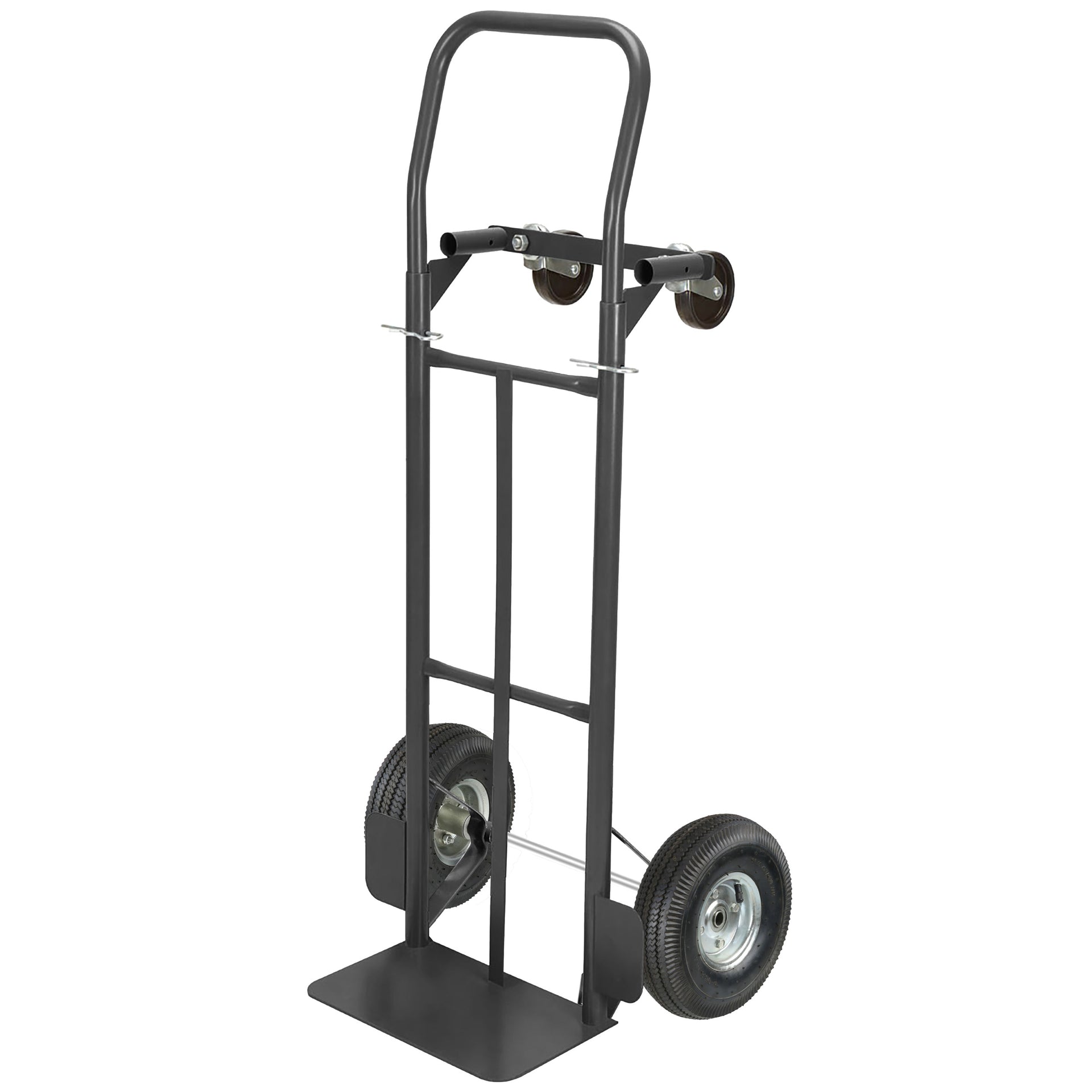 600lb vertical, 800lb horizontal Vertical steel tubing  Powder coated  9” x 14” toe plate flow-back handle 10” pneumatic wheels 4” swivel casters Use correct tool for correct application. Do not stand in or ride in. Follow max weight instructions. Always...View more